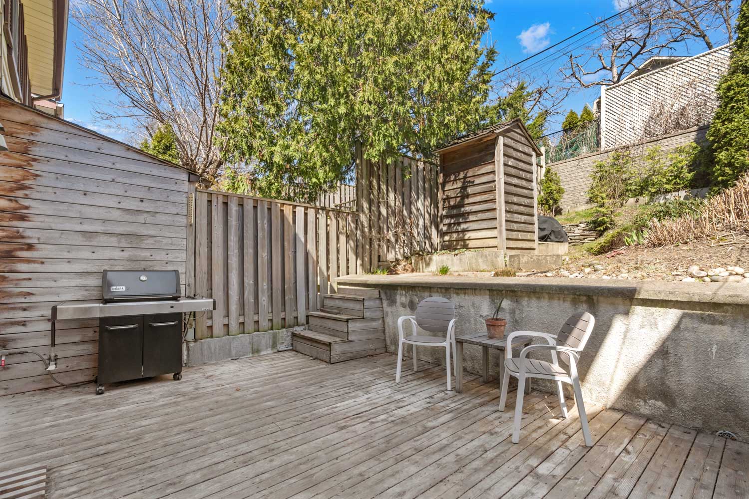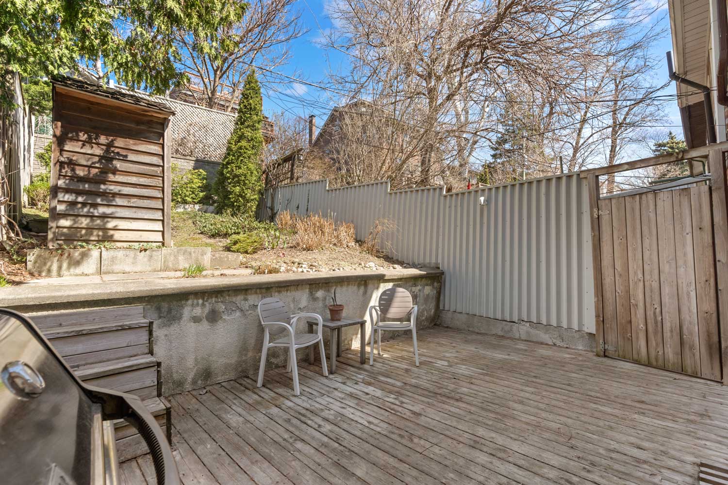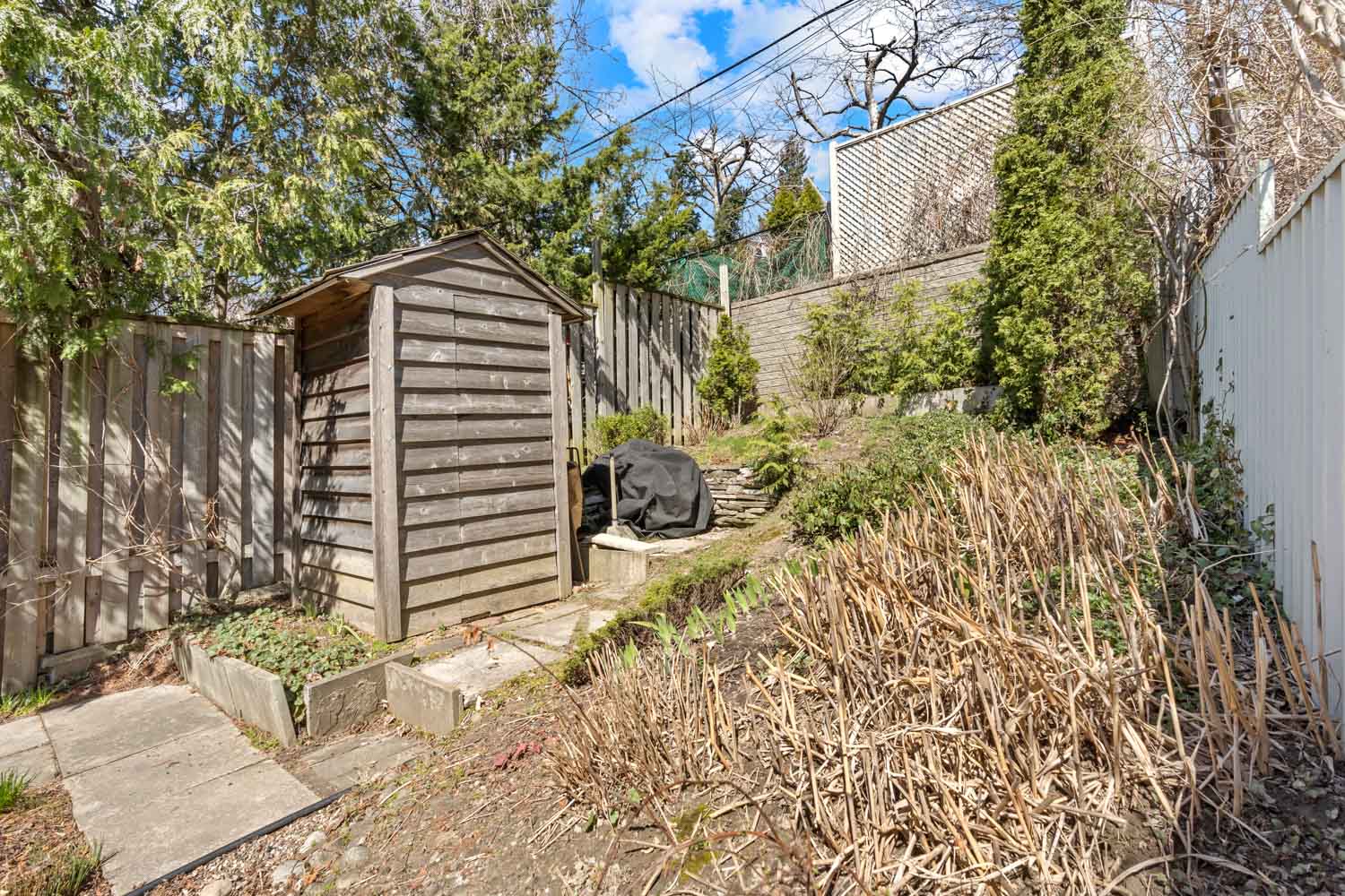 Inside, you’ll find bright bedrooms with real cedar closets, a sleek gourmet kitchen with a gas cooktop and high-end appliances, and a finished basement for bonus space. Outside, the west-facing backyard is fully fenced and perfect for kids, pets, or BBQ season. No garage? No problem. There’s a secure shed out back and a surprising amount of storage tucked beneath the front porch with steel doors and even hidden bin access (seriously clever).