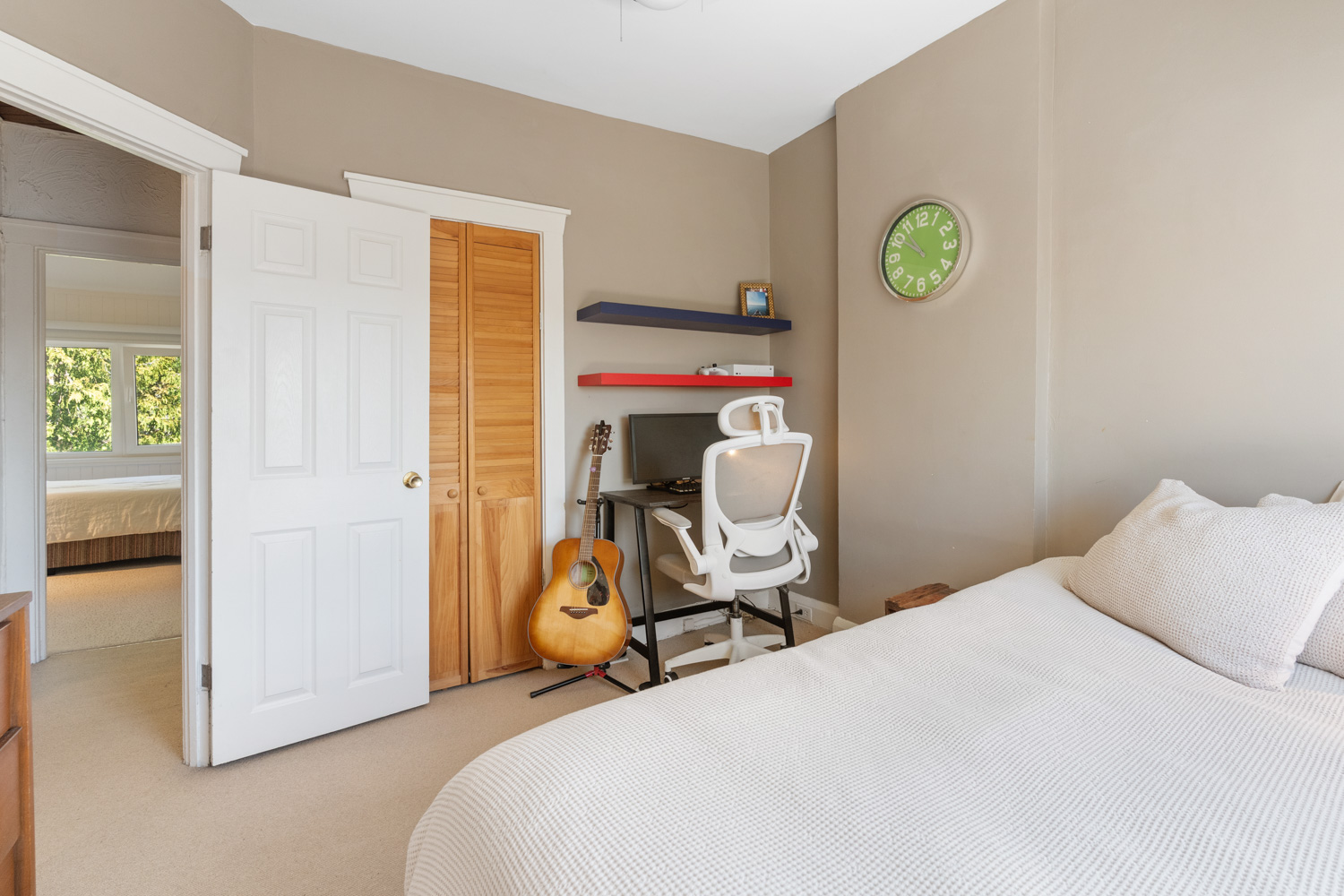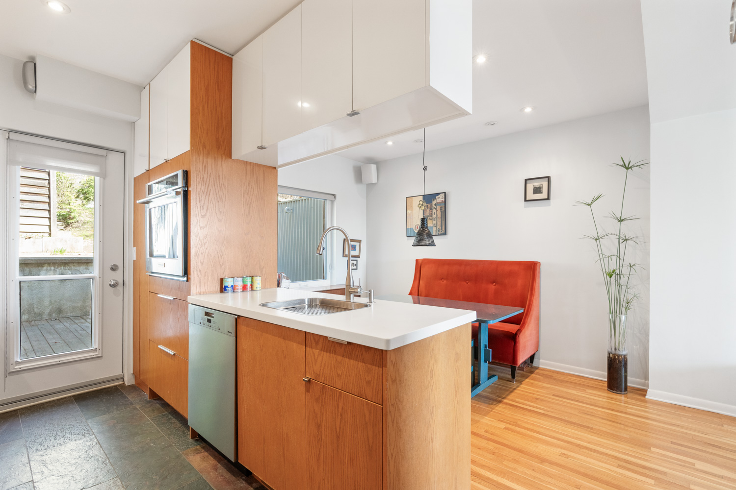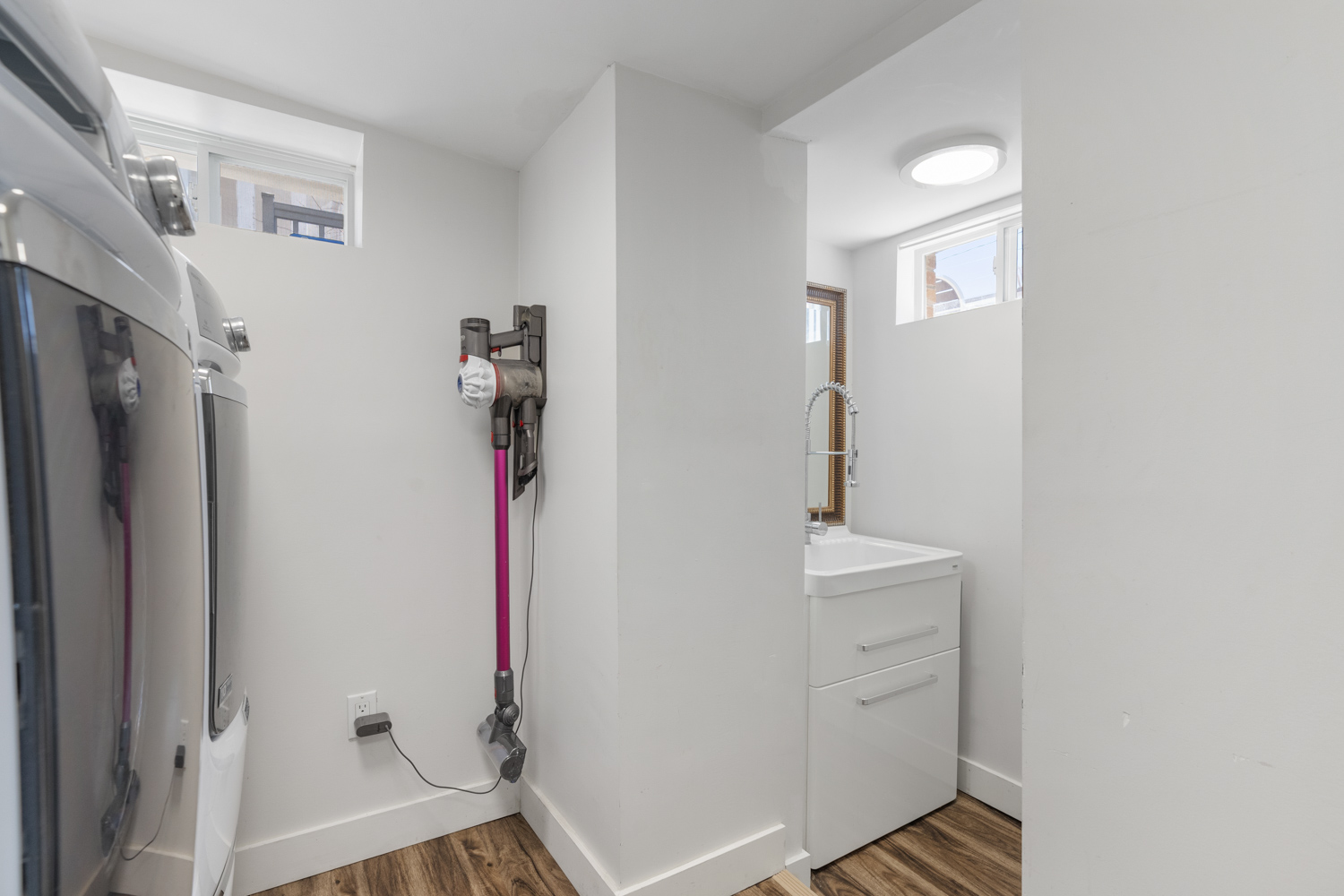 Inside, you’ll find bright bedrooms with real cedar closets, a sleek gourmet kitchen with a gas cooktop and high-end appliances, and a finished basement for bonus space. Outside, the west-facing backyard is fully fenced and perfect for kids, pets, or BBQ season. No garage? No problem. There’s a secure shed out back and a surprising amount of storage tucked beneath the front porch with steel doors and even hidden bin access (seriously clever).
